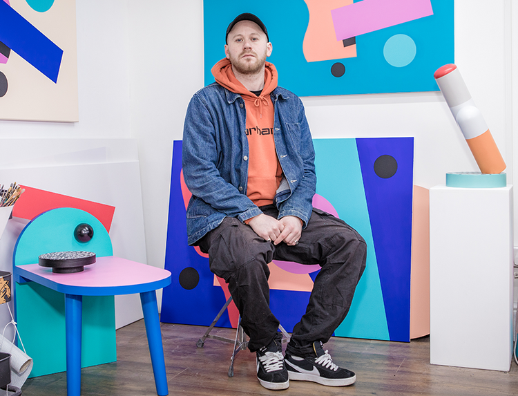 Mr. Penfold, also known as Tim Gresham, is a multidisciplinary artist from Cambridge (United Kingdom), with a relevant weight in muralism and graphic design. Strongly influenced by the graphics of the skateboarding world and street art since he was a teenager, he has developed a different and fun approach to abstract art over the years. To create this aesthetic, the artist, who lives in Bristol, has done an abstraction job of his graffiti characters: "I started to separate the characters and focus on their elements: eyes, nose, mouth…" he explains. “With these pieces I began to create a library of shapes that I would use to make abstract paintings. Over the years, these characters’ elements have disappeared and now my work is practically only shapes and colors”.