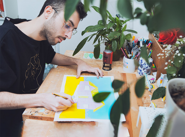Three colors: pink, blue and yellow. Pau Sanz i Vila (Dénia, Alicante, 1990) is a Spanish illustrator who has created a unique universe with this tricolor project. He has already exhibited in galleries such as Artevistas Gallery (Barcelona) or Mad is Mad (Madrid) among others, and participated in fairs and artistic events such as Animal Capital (Madrid and Valencia), MARTE Fair, Ilustrísima, MULAFEST or ARCOmadrid.