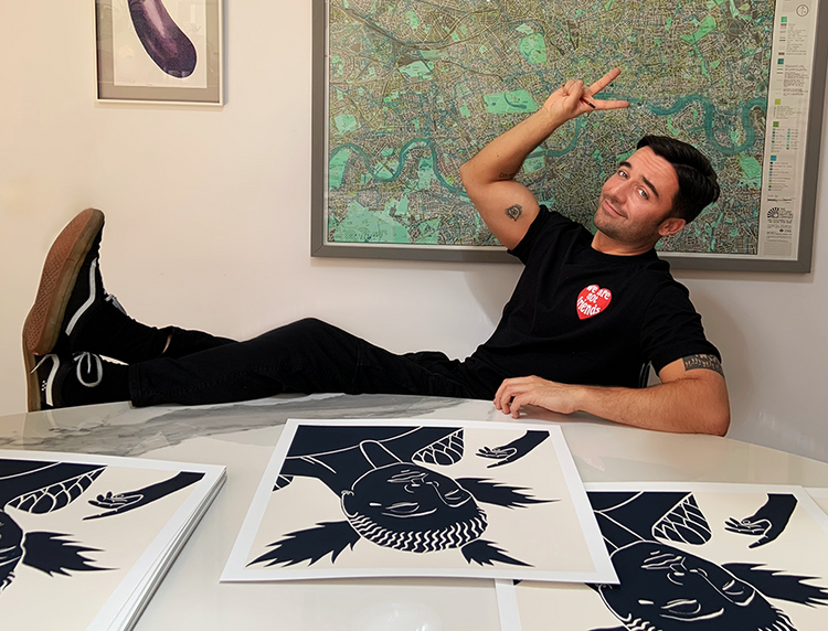 He has been building up gradually until he have found a personal style, getting his unmistakable stamp of retro sensibility to be recognize. We can highlight his work in the publishing world, as a collaborator of Condé Nast Group, for magazines as Condé Nast Traveler and GQ, among others. In addition, he has worked for Cadena Ser, Thyssen-Bornemisza Museum, Mulafest and IFEMA, where he exposes a permanent mural. Customers like Sephora, Shiseido, Kimko, Tommy Hilfiger, Just Eat and Netflix have had him for their advertising campaigns. He is very proud of its international collaborations with the theater, designing posters for the plays 'Angeleta & Etelvina' in the Little Angel Theatre in London (UK) and 'The Traveller' at the Royal Culture Center of Amman ( Jordan).