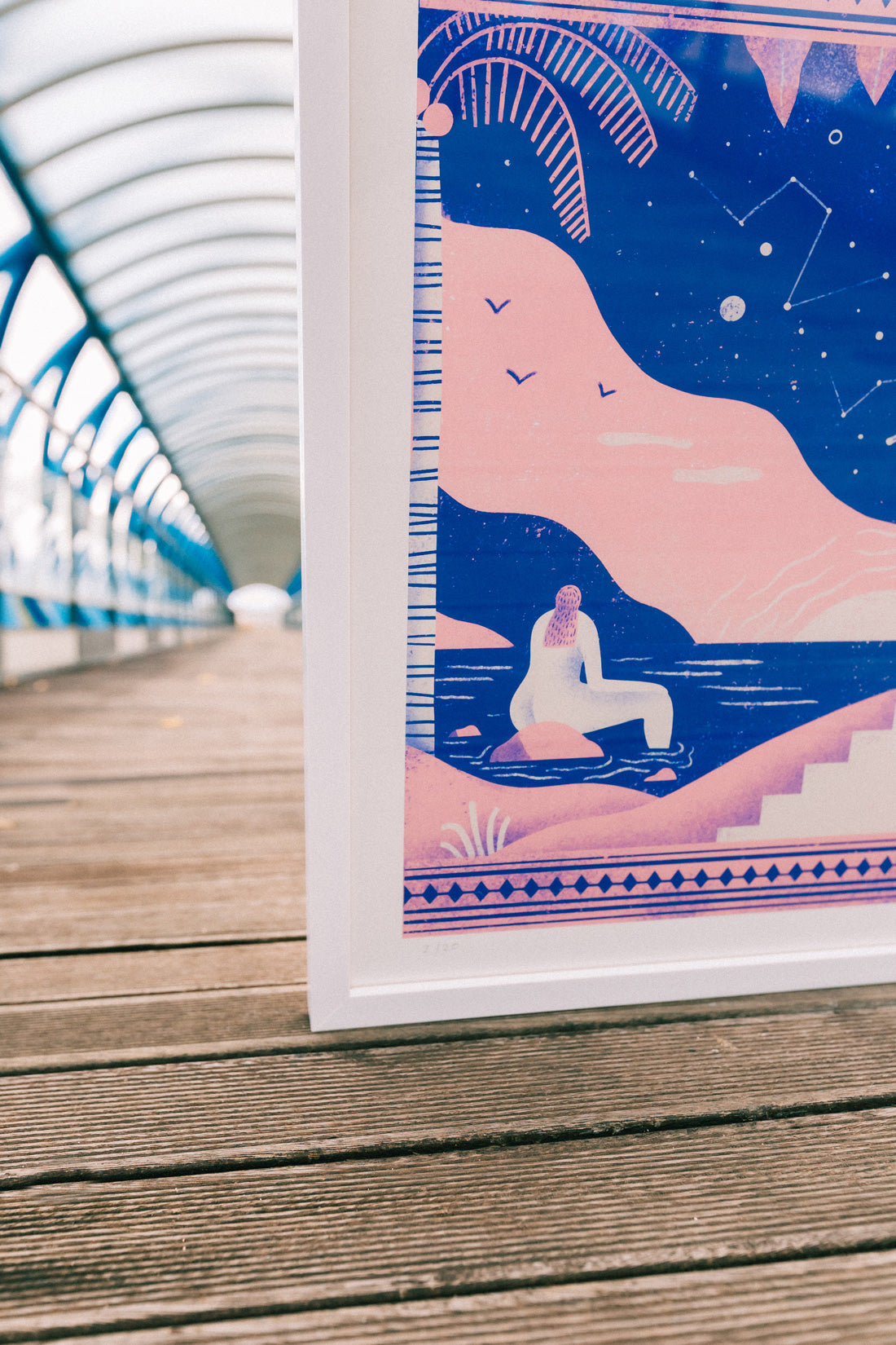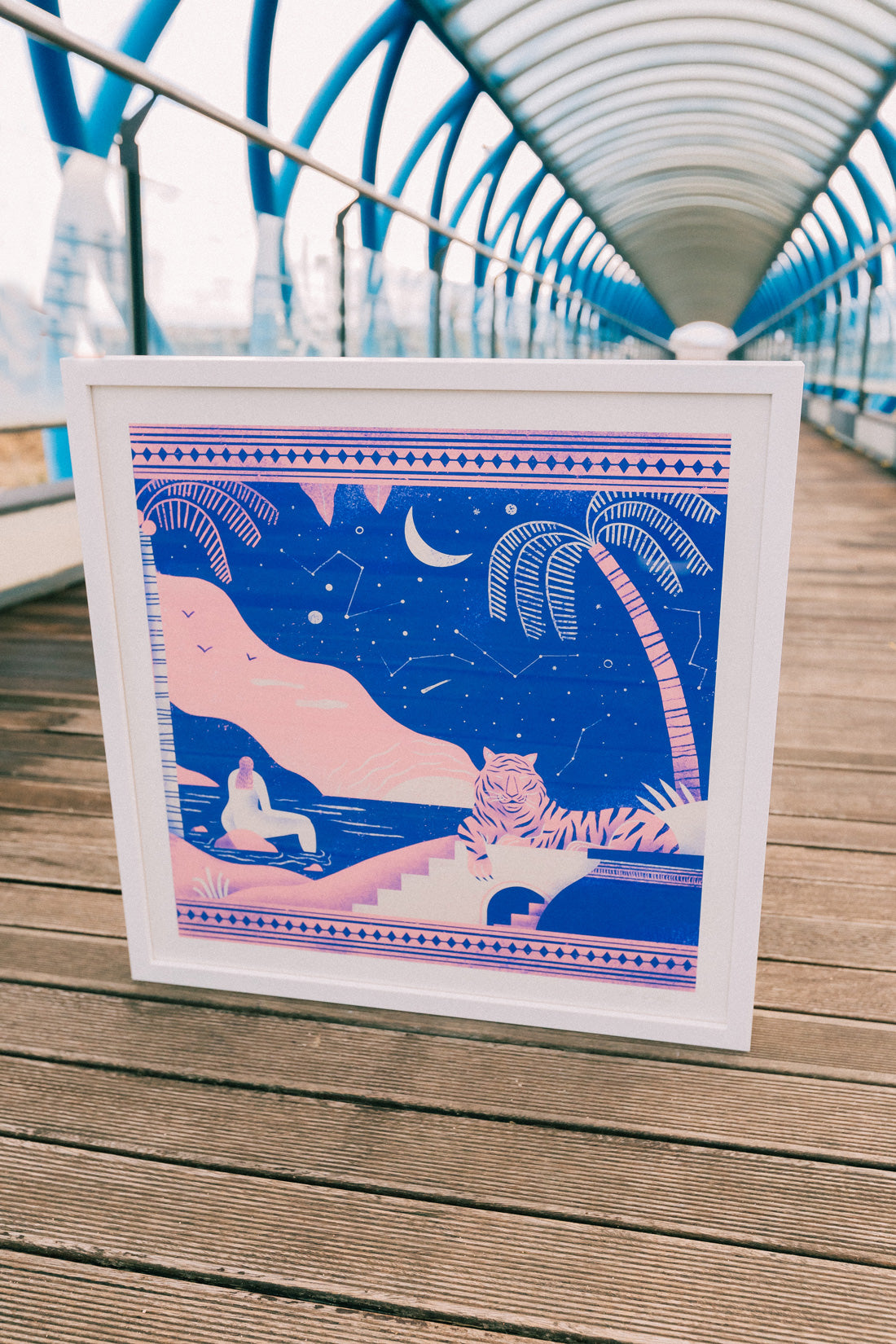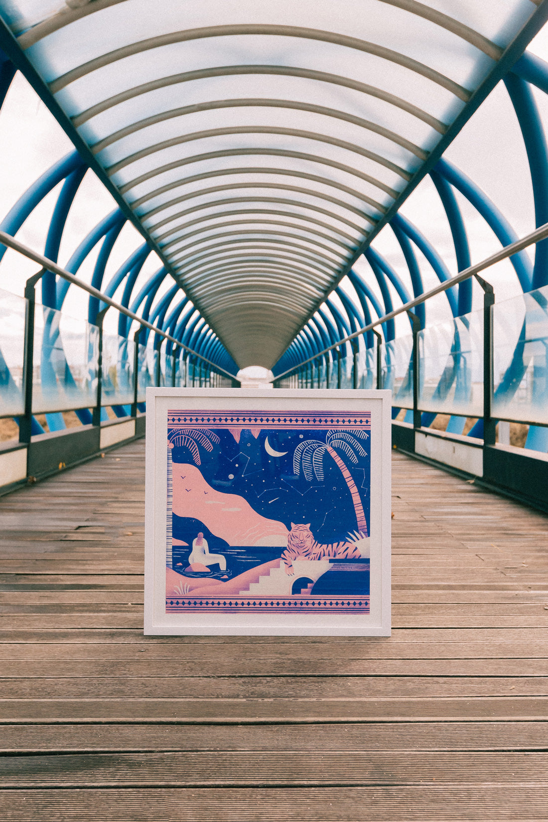 Vincent Van Gogh stated: "Keep your love of nature, for that is the true way to understand art more and more". Artworks like this by Australian artist Mark Conlan come from this love. An allegory of environment, of caring for the nature and its inhabitants, where a calm, peaceful scene is glimpsed, with simple lines and defined silhouettes. "This work represents the serenity of sitting in the middle of nature. Human beings coexist in peace and harmony with animals and environment, as it should be," explains Conlan.