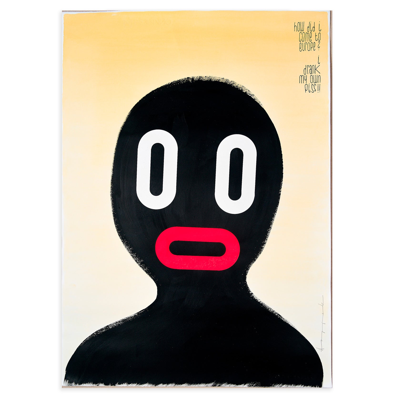 This original artwork by Boris Hoppek is part of a series of drawings that the German artist made to denounce cases of racism and illegal immigration. This piece follows his usual committed themes, which deal with social problems from a point of view of black humor. Hoppek was a reference of graffiti in the nineties and is well known for his character Bimbo in the world of art.