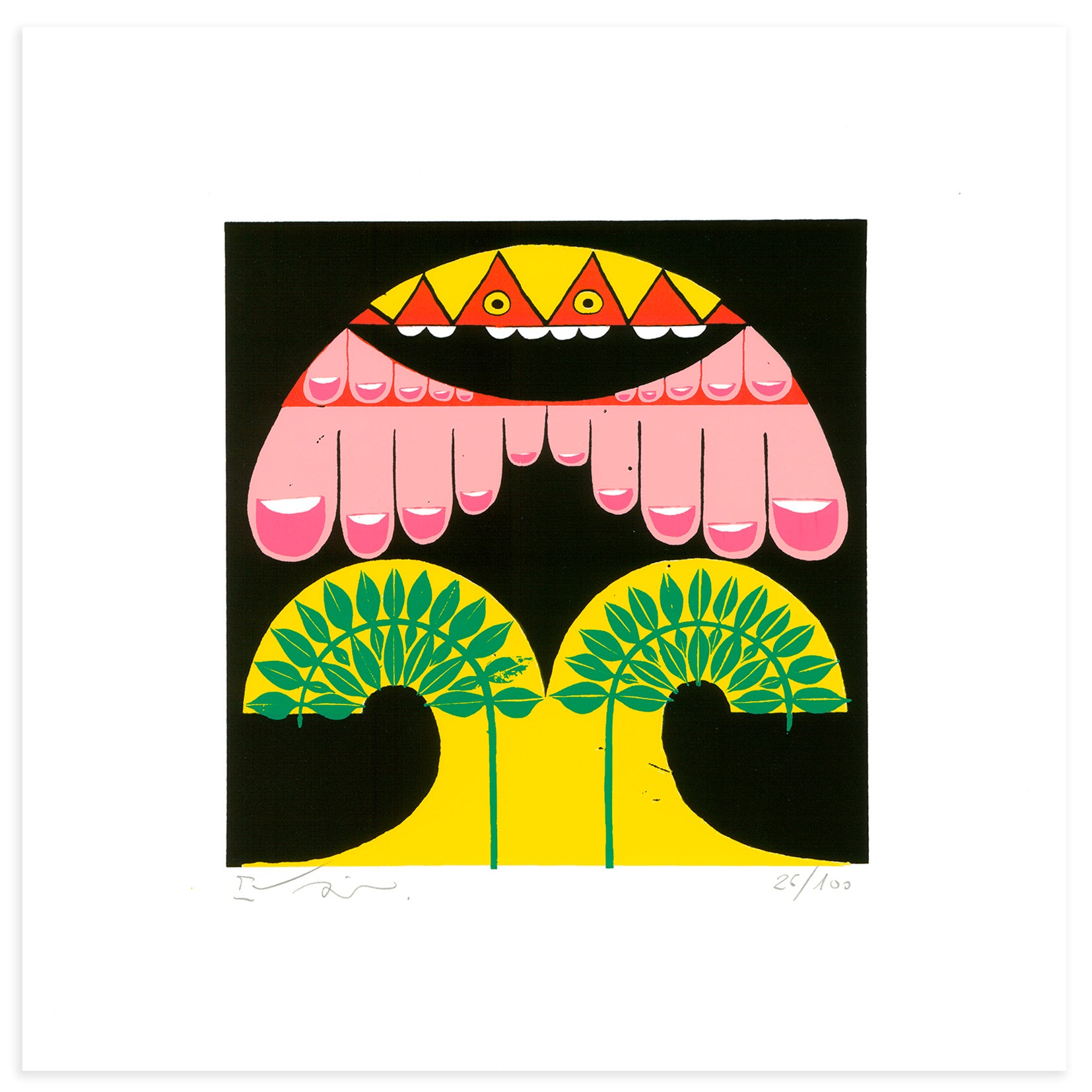 The world, at 5, is a giant box of games. And that's what Iván Solbes created in his book ‘Mola tener 5 años’ from which this beautiful silk screen series is extracted and which brings together all the formality and symbolism that he likes to include in his most personal works has been taken. “I've discovered that I can climb a tree, it's great to be 5!” he tells us of the piece. He also talks about the wonder, innocence, and everyday reality that we live at that age. Today we'd like to be 5 again, and for that we believe in this work, and of course, in Iván Solbes.