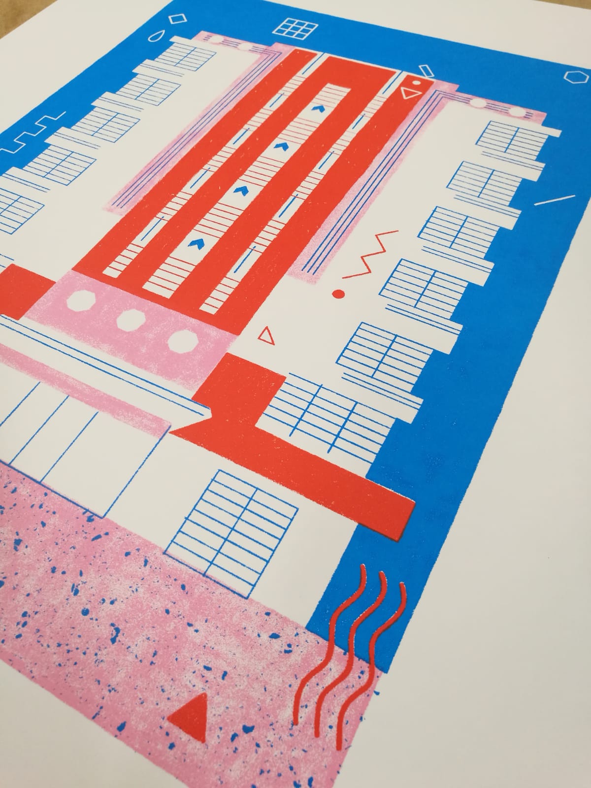 Silk screen 3 inks on Ultrawhite Bristol 640 g paper.