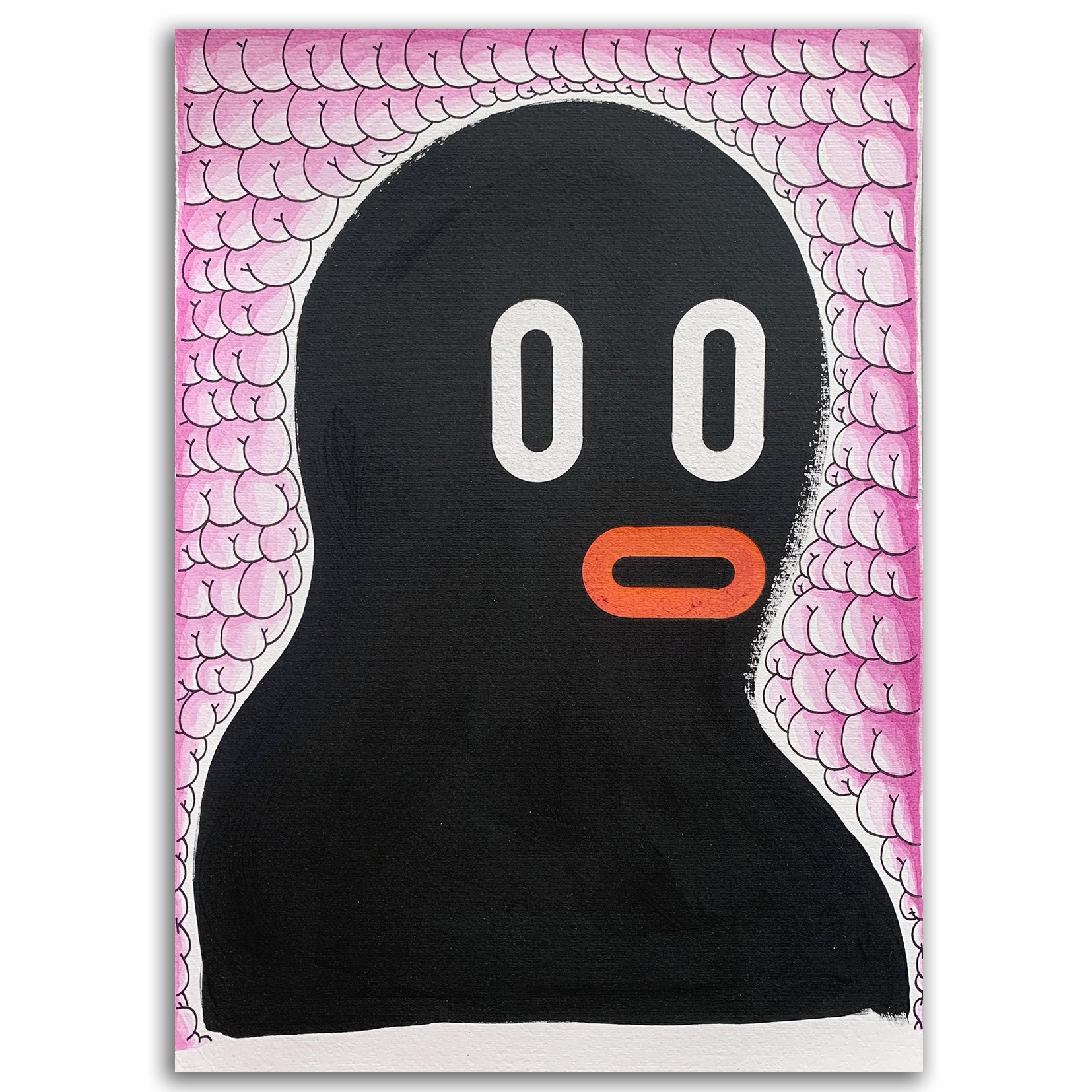 Bimbo is the famous character that has given Boris Hoppek worldwide recognition. A black figure with red lips that the artist has painted in numerous forms and situations, both on canvas or paper and on street walls. Bimbo is his most recognizable icon and serves to tell stories of social denunciation and show his black humor and political criticism. To have one of these originals is also to have a bit of the most committed urban art of the 2000s, pioneer of the new figuration of contemporary art that is so much in demand today by art collectors around the world.