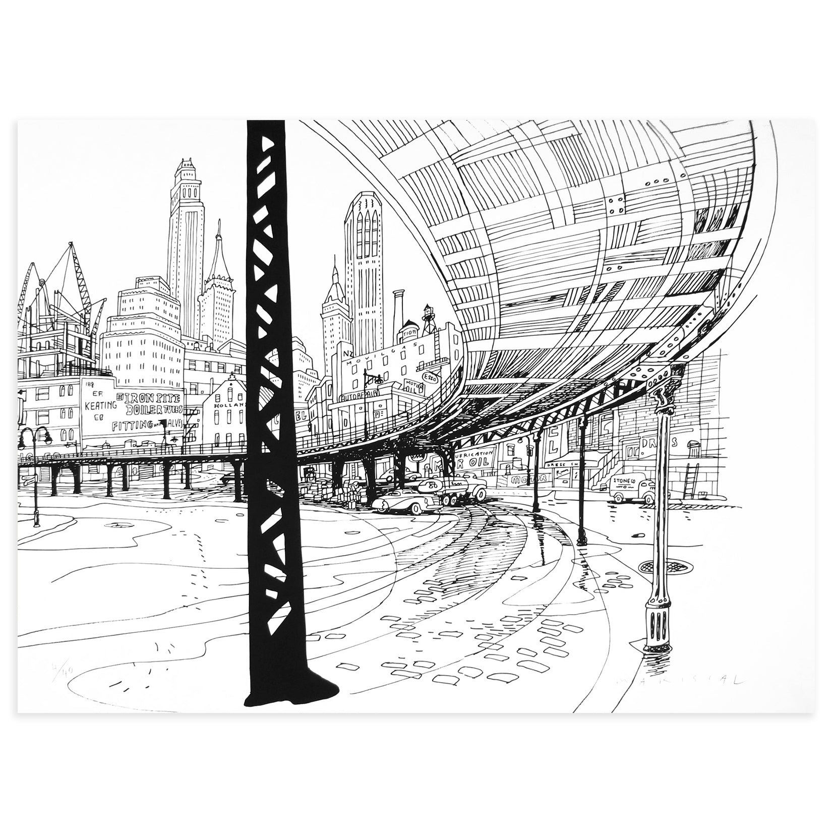 An 'opus magnum', which takes up a lot of space in the living room or above your bed. For us, who love architecture, it's fascinating to see how Mariscal reinterprets it through his curvilinear and austere strokes, like this ‘skyline’ it comes through under his brush with the sobriety of simplicity and everydayness interrupted by the artist. It could well be the Williamsburg neighbourhood of Nueva York, it could well be any city in the world, what enamours us with this piece is Mariscal's stamp which is impressed upon every profile of every skyscraper.