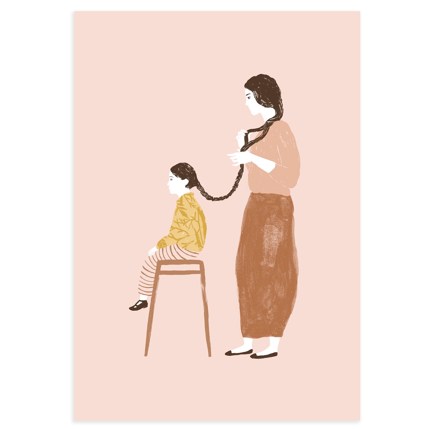 A union for life, between a mother and a daughter, between an older sister and a younger one. How much feeling, how much truth is there in this piece, so many reasons to never separate. This silkscreen by Italian artist Elisa Talentino is printed on Favini Crush Citrus paper, an ecological range made from by-products of agro-industrial processes that replace up to 15% of the cellulose from trees. Waste from citrus fruits, coconut, cocoa, grapes, cherries, lavender, corn, olives, coffee, kiwi, hazelnuts and almonds are the natural raw materials that, instead of being disposed of as waste, are treated and added to the paper instead of cellulose.