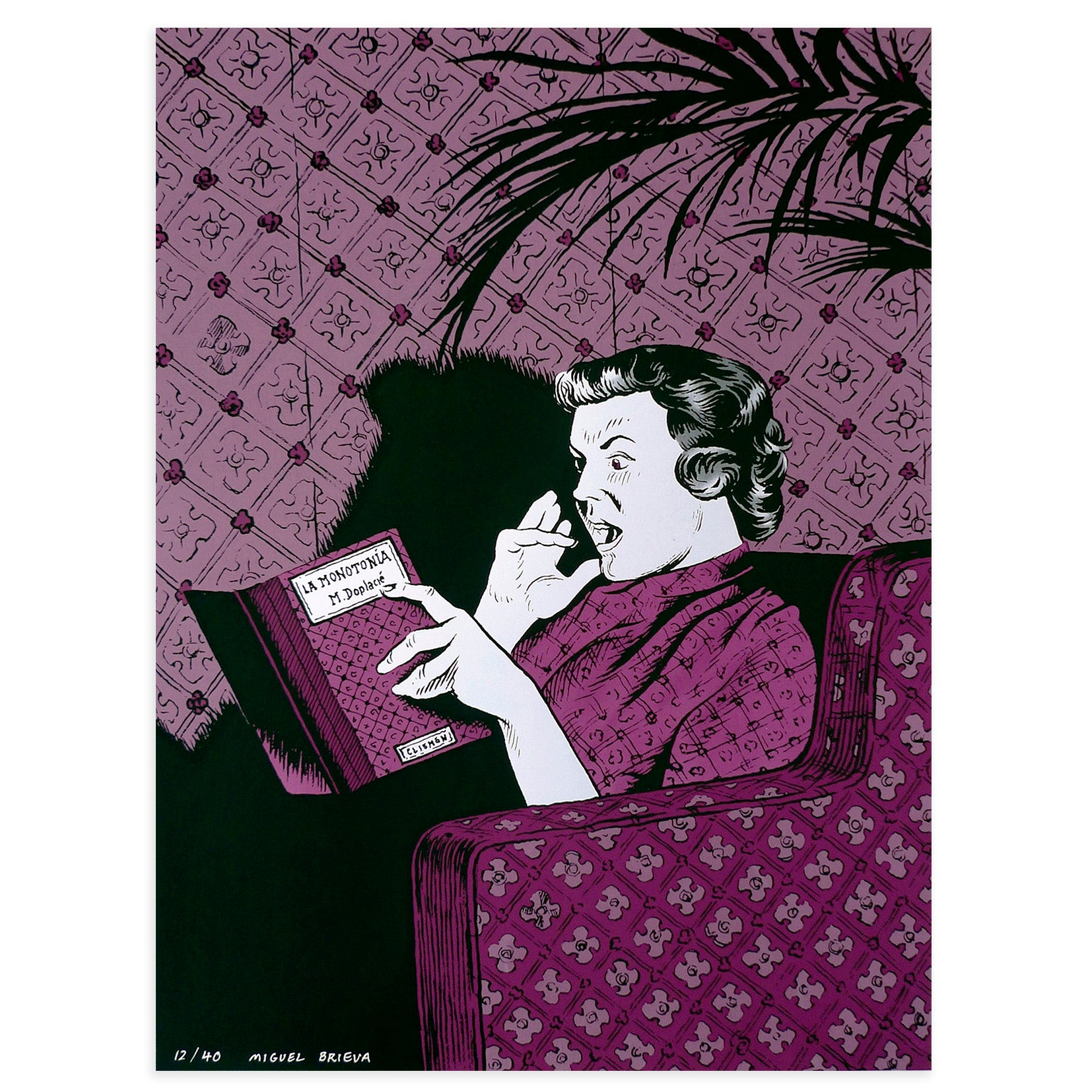 As if it were a work of visual poetry, with a pop aesthetic which drinks from post-war consumerism. This piece is simple in its composition, but hides humour, political message, and even costumbrist criticism. It's a reflection about family structure, stupidity, literature for mass consumption, and even the domestic roles we acquire due to books.