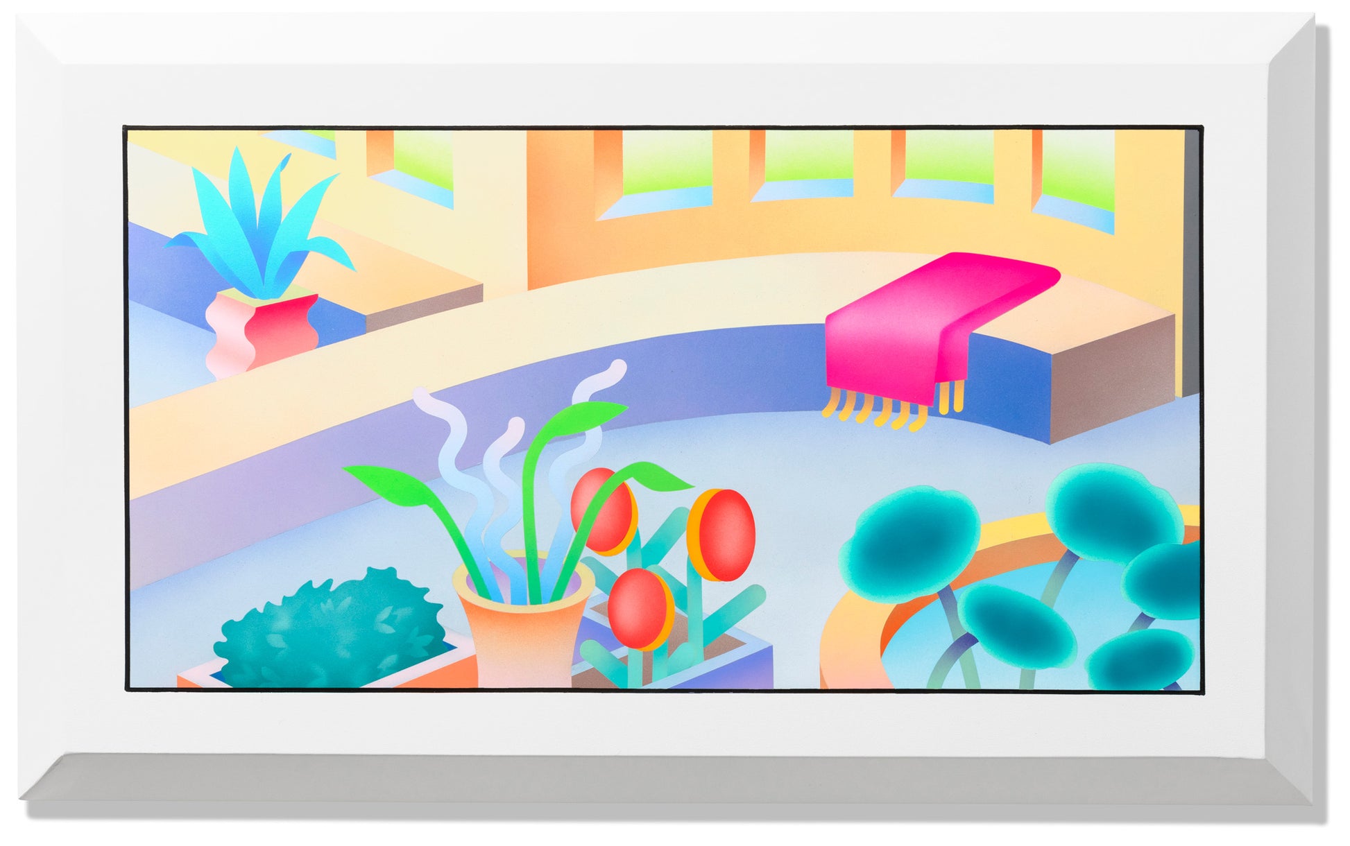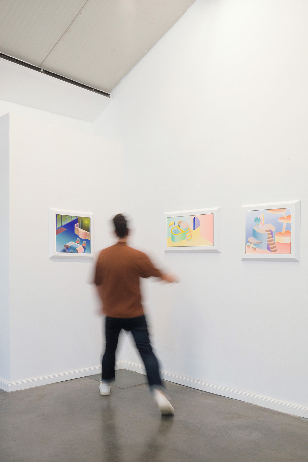 The Japanese architect Tadao Ando said that "Architecture is deemed complete only upon the intervention of the human that experiences it”. Here we could add that architecture can also be many other things, since everything spatial involves looking around, even a state of mind. The Japanese artist Millitsuka has spent time observing how places are, from an architectural but also an emotional point of view. In these original pieces, she places the objects as if they were those human beings that Tadao Ando spoke of and turns them into pieces that breathe, that live spaces. With a powerful use of color, Millitsuka has created iconic, singular work that goes beyond illustration or the domestic. The outlined way of working each piece of hers, with care, detail and craftsmanship, immediately make her the generational relief of the new Japanese art.