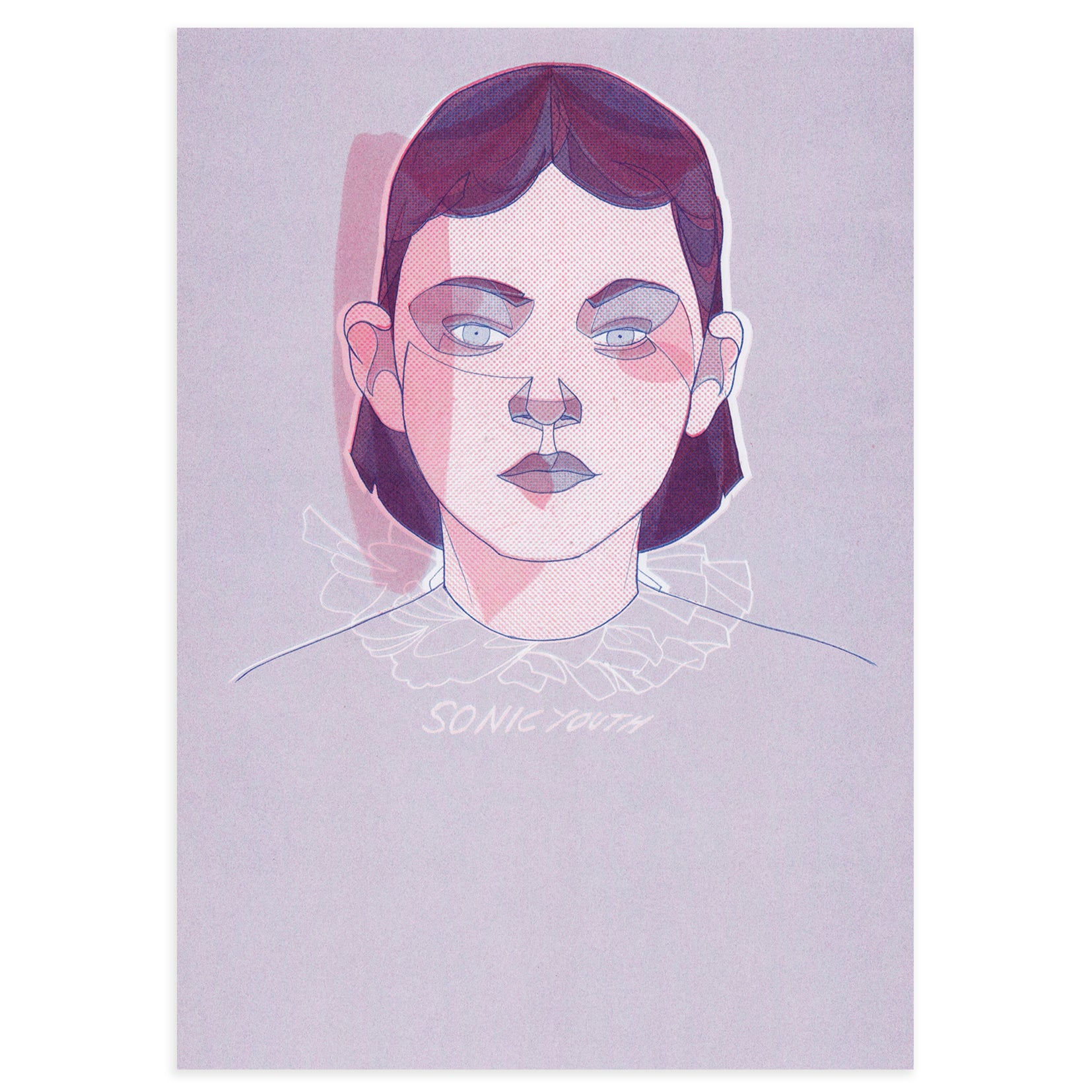 "I love you, I love you, I love you, what's your name?" These are some lines of 'Drunken Butterfly', the song of Sonic Youth which Javier Jubera wants to honor with this artwork. This limited edition is part of a series calles FAN created at the end of 2016, where he portrays his great myths of 20th century music. This tribute to Sonic Youth implies one to the Noise Rock that led in the eighties and that, three decades later, remains as an icon to be represented by the artists of the 21st century. Its main features are symmetries on the faces and lines in a game with two unique colors that end up being hundreds...