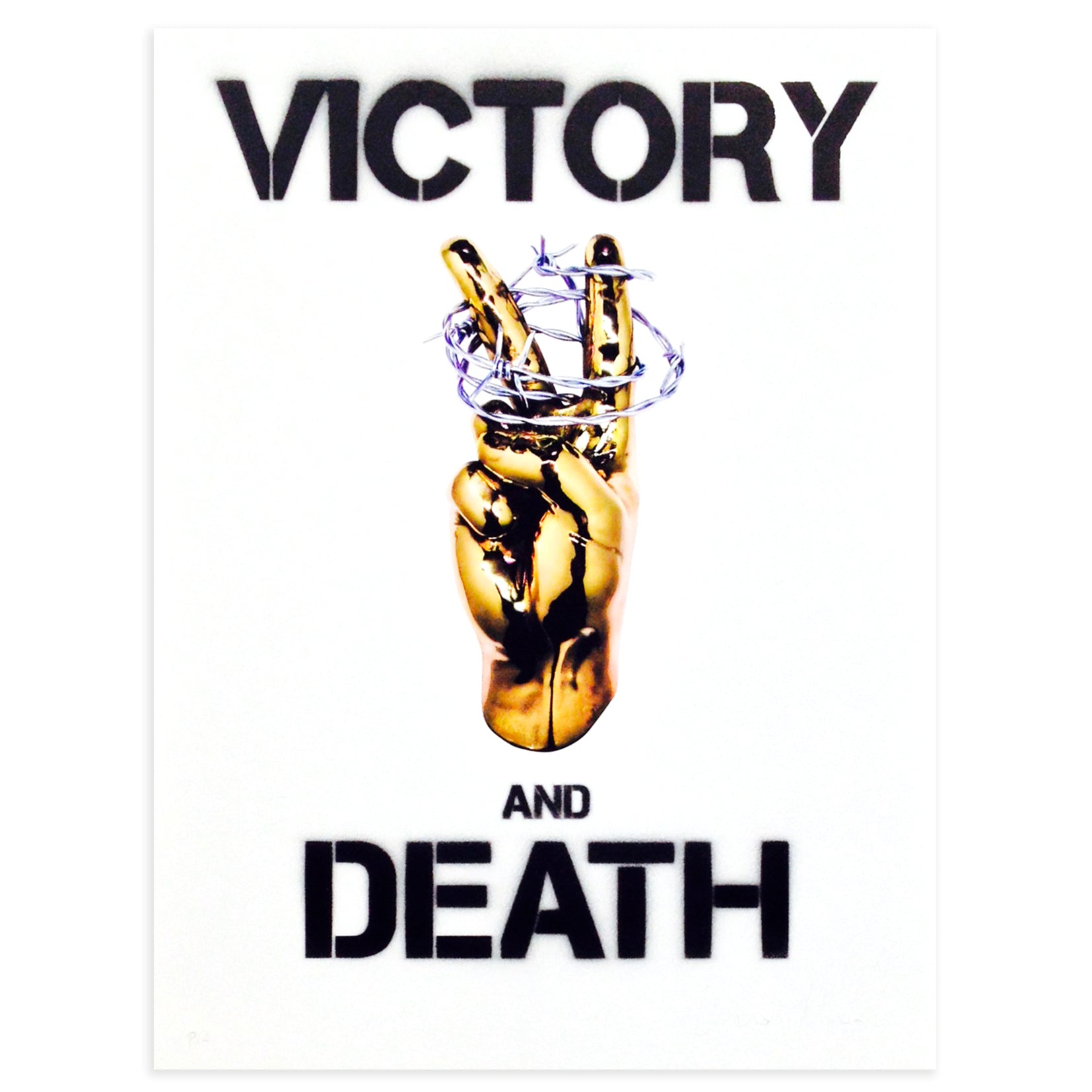 Eugenio Merino, one of the essential names of the avant-garde art in the last decade in Spain, adds his first graphic work to Gunter Gallery. The artwork is an ink version of the legendary sculpture exhibited in 2010 at the DNA Gallery (Barcelona), as part of the exhibition 'We Do not Need Another'. To transfer it to the paper, the artist has used a technique that mixes digital print with stencil. 'Victory and Death' retains the previous meaning, "an allegory of revolution and change," explains the artist.
