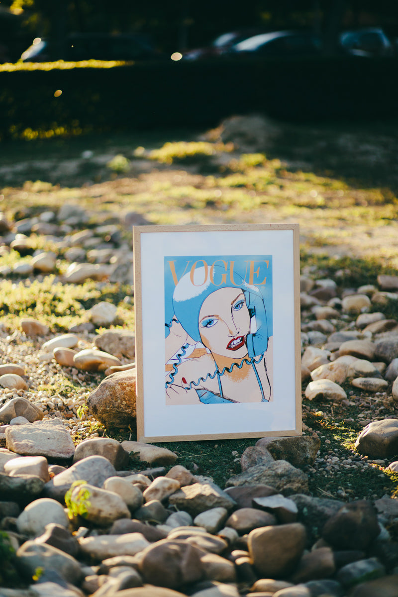 There was a model in the seventies that was everywhere: Jerry Hall. In that decade only a few could say that they came to star in more than 40 magazine covers like Vogue or Cosmopolitan. This one that has been versioned by the artist Maria Herreros is one of the better known. Hall appears with a telephone inside her bathing cap. A challenging, fresh attitude, to present the summer trends. Now, this limited edition silkscreen signed by Herreros pays tribute to this pop iconography of the mythical female magazine, but with a reflexive point of viwe: "The outdated definition of beauty, that continues today, is revealed in the covers of the bible of fashion since 1892. Being the limits of the beautiful the basis of my work, I have always been fascinated by the covers of Vogue and I have used them a lot of times in my work as a vehicle to portray the time, the tastes, the society ".